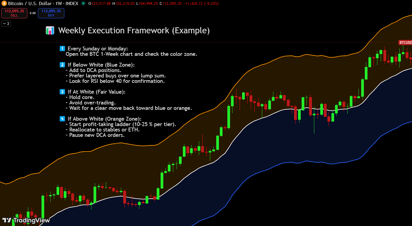 Goal: Show Bitcoinβs weekly momentum bias for DCA, caution, or profit-taking.